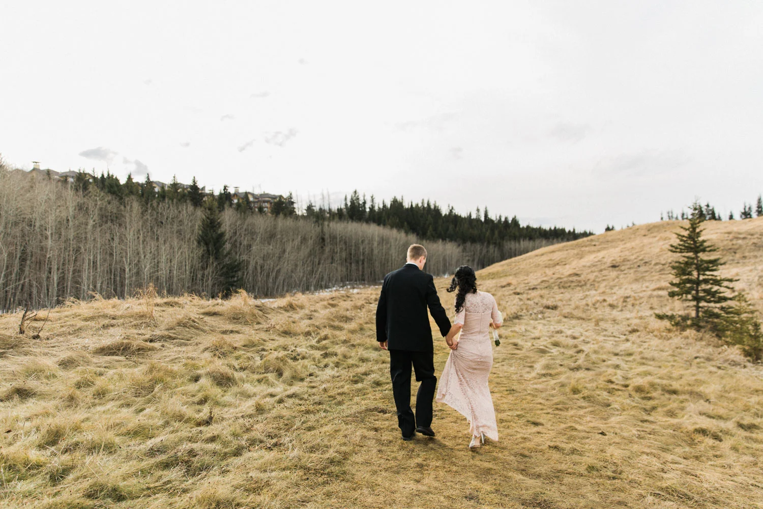 When life gave these two a second chance at love, they took it. They did an incredible job of planning their wedding within a few weeks of getting engaged, pulling everything together in phenomenal style from the wedding dress to the reception. The neutral wedding colors she chose of gold, ivory and nude with a brown undertone looked incredible in the colours of early spring here in Calgary (mostly shades of brown). You would never guess that the flowers are DIY, but she made the bouquets herself! Isn't that incredible? The intimate feeling of the whole wedding was beautiful, and having a bridal party of only their children was the perfect choice.
